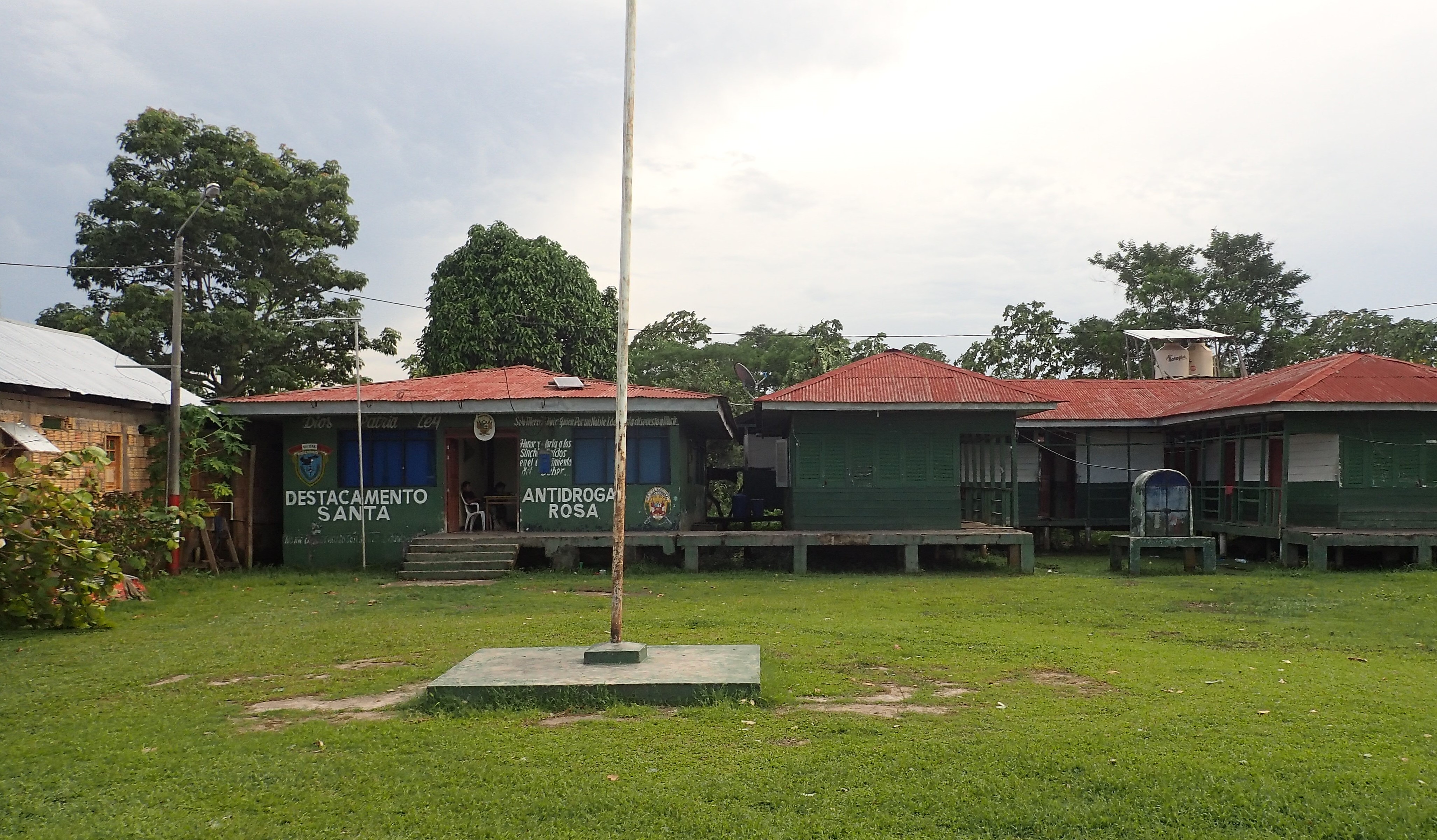 Et c’est là que nous découvrons la troisième ambiance de la triple frontière : l’île de Santa Rosa, côté péruvien. Comme notre bateau partira de Santa Rosa au milieu de la nuit, on nous a conseillé de dormir sur place. Nous disons donc adieu à la Colombie et traversons le fleuve. Nous voici au Pérou ! Sur les berges de l’Amazone et de ses affluents, les ports sont constitués de pontons, sorte de radeaux supportant des constructions, dont chacun correspond à une destination. Notre ponton, celui du bateau rapide vers Iquitos, comporte un « hôtel », où nous dormirons quelques heures avant de partir. En fait, la petite construction en bois est très sommaire…