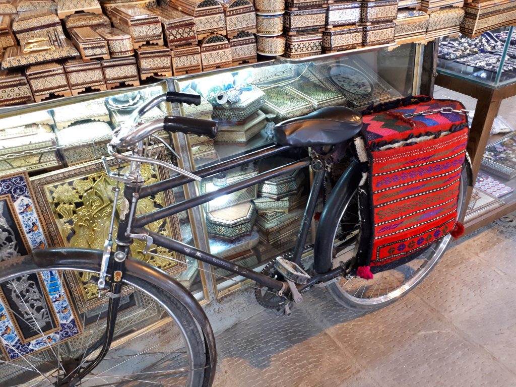 On croise dans le bazar de nombreux chariots et vélos, ces derniers souvent équipés de splendides sacoches en kilim